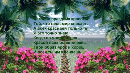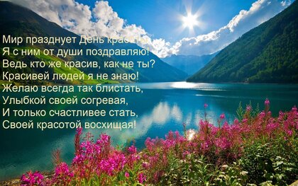 Открытки к международному дню красоты. Открытки с международным днем красоты. Международный день красоты отмечается каждый год 9 сентября. В этот день обычно проводятся конкурсы красоты, а так же конкурсы мастерства среди тех кто ее создает - парикмахеры, стилисты, визажисты, косметологи. Красота завораживает, восхищает и поднимает настроение и тонус. Достоевский в романе Идиот писал, что красота спасет мир, но там он писал о красоте души и красоте духовной. Если же говорить о красоте женской, но она скорее ведет к войне и раздорам среди мужчин желающих ей обладать и завистниц мечтающих ее испортить. Женская красота очень опасна и коварна, она сгубила не одну жизнь, а иногда даже была причиной войн (вспомните фильм Троя). Но одновременно с тем красота толкает на подвиги, на самосовршенствование мужчины во имя дамы его сердца. Обязательно поздравьте своих возлюбленных, подруг, да и просто знакомых с этим замечательным праздником.