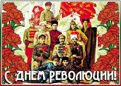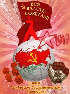 Открытки с днем Октябрьской революции. В СССР 7 и 8 ноября праздновалась годовщина Великой Октябрьской Социалистической революции. Именно с этой даты закончилось правление царя и началась эра коммунизма. В настоящее время ведется много споров на тему того насколько был необходим этот переворот, что от него больше пользы или вреда. Поэтому в 1996 году указом президента Бориса Николаевича Ельцина название праздника было изменено с Годовщина Великой Октябрьской социалистической революции на День согласия и примирения.
