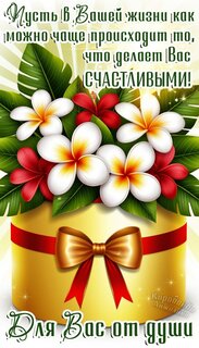 Пожелания от души - это пожелания, которые идут от сердца и как правило сопровождаются щедрым подарком. В этом разделе сайта вы найдете как раз такие открытки - красивые букеты, сердечки и конфеты с пожеланиями от всей души. Пожелания для тебя с нежностью. Корзинки с всякими вкусностями, ну и конечно сердечки в подарок.