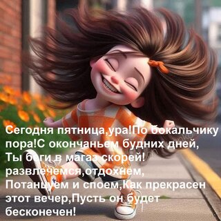 Открытки с наступающей и наступившей пятницей, поздравление с окончанием рабочей недели, пожелания удачной пятницы 13-го, и открытки с разнообразными фразами про пятницу. Все что связано с одним из самых любимых дней недели. Отправляйте своим друзьям поздравления с пятницей, радуйтесь, балдейте, расслабляйтесь и отрывайтесь. Ведь впереди выходные.