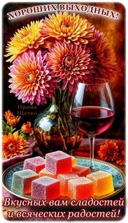 Открытки с пожеланиями хороших, классных, отличных выходных. Разнообразные пожелания провести отлично выходные. Смешные, забавные, милые, красивые, романтичные, шикарные открытки. На любой вкус цвет, пол и возраст. Открытки в стихах и прозе, на любое время года и период месяца. Вообщем огромная коллекция открыток для выходных дней.