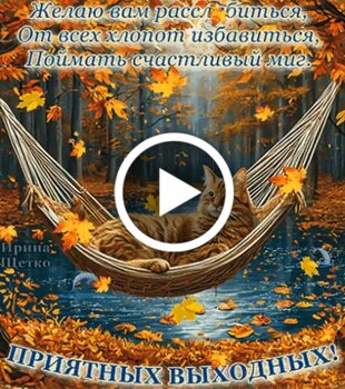 Открытки с пожеланиями хороших, классных, отличных выходных. Разнообразные пожелания провести отлично выходные. Смешные, забавные, милые, красивые, романтичные, шикарные открытки. На любой вкус цвет, пол и возраст. Открытки в стихах и прозе, на любое время года и период месяца. Вообщем огромная коллекция открыток для выходных дней.