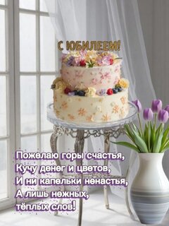 Красивые открытки с юбилеем. С цветами, стихами и тортами, анимированные и статичные. На любой вкус и цвет. Выбирайте открытки и отправляйте абсолютно бесплатно в Одноклассники, Вконтакте и Мой Мир, e-mail или просто скачивайте.