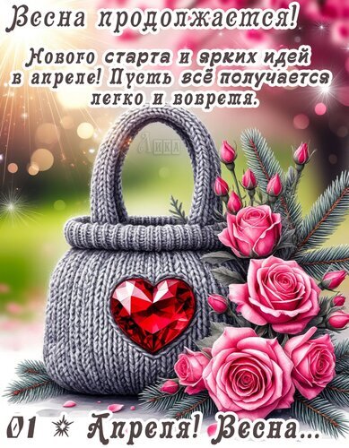 Весна продолжается! Нового старта и ярких идей в апреле! Пусть всё получается легко и вовремя. 01 Апреля! Весна...