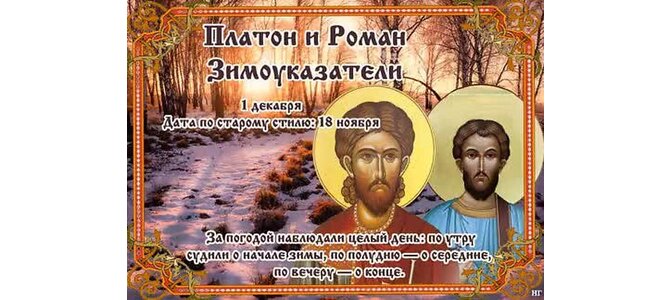 Открытка "1 декабря Платон и Роман Зимоуказатели"