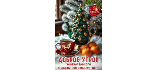 Открытка "1 ЯНВАРЯ. ДОБРОЕ УТРО! ЗАМЕЧАТЕЛЬНОГО ПРАЗДНИЧНОГО НАСТРОЕНИЯ!"