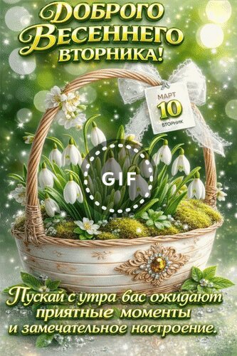 Анимированная открытка "10 марта Доброго весеннего вторника! Пускай с утра вас ожидают приятные моменты и замечательное наст"