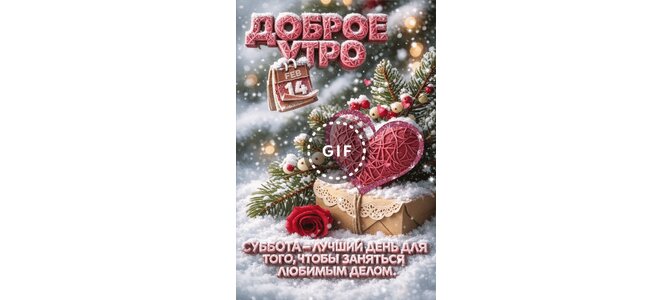 Анимированная открытка "14 февраля Доброе утро. Суббота - лучший день для того, чтобы заняться любимым делом."