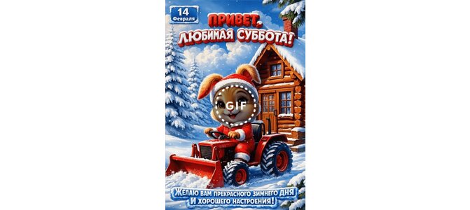 Анимированная открытка "14 февраля. Привет, любимая суббота! Желаю вам прекрасного зимнего дня и хорошего настроения!"