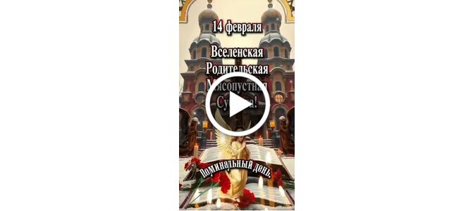 14 февраля.Вселенская Мясопустная Родительская Суббота! Поминальный день. В день родительской субботы помяним добрым словом всех тех, кого к сожалению нет с нами.Пускай молитва наша стелет им в вечность светлый, тихий путь. Они нам и Ангелы Хранители с небес. Вечная светлая память.