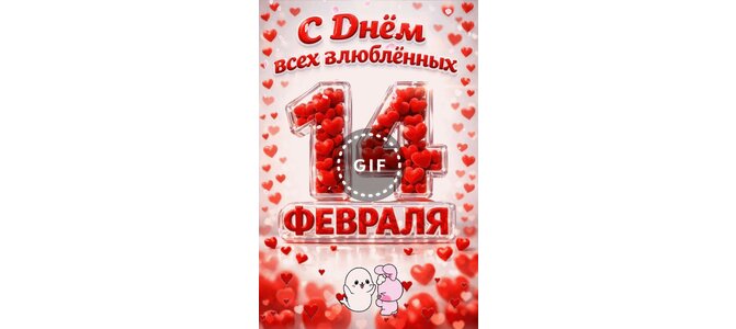 Анимированная открытка "14 февраля С Днём всех влюблённых!"