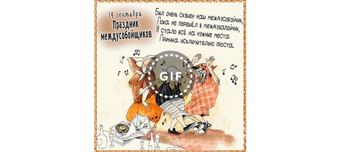 Анимированная открытка "14 сентября Праздник междусобойщиков. Был очень скушен наш междусобойчик, пока не перешёл в"