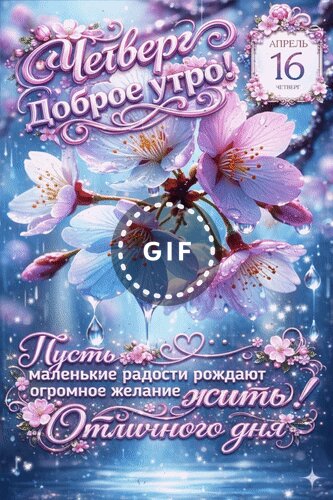 Анимированная открытка "16 апреля Четверг. Доброе утро! Пусть маленькие радости рождают огромное желание жить! Отличного дня"