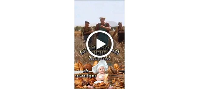 Видеооткрытка "16 октября Всемирный день хлеба! Люди хлеб в полях лелеют, сил для хлеба не жалеют. Всех с"