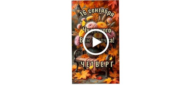 Видеооткрытка "16 сентября Чудесного утречка! Вторник."
