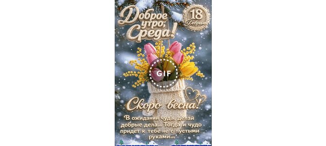 Анимированная открытка "18 февраля Доброе утро, Среда! Скоро весна! В ожидании чуда, делай добрые дела... Тогда и чудо..."