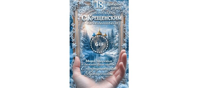 Анимированная открытка "18 января Доброе утро! С Крещенским сочельником! Мира, здоровья и божьей благодати! С"