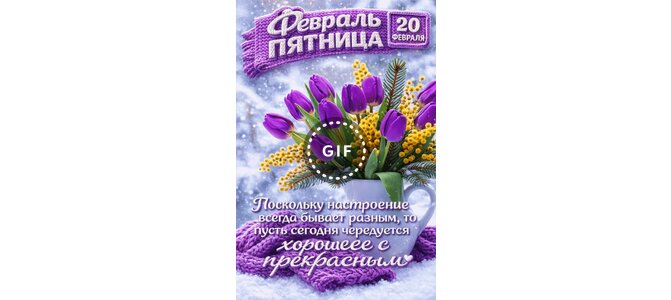 Открытка "20 февраля Февраль Пятница Поскольку настроение всегда бывает разным, то пусть сегодня чередуется хо"