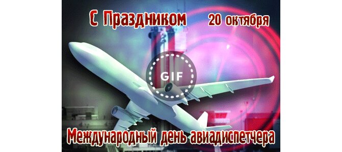 Анимированная открытка "20 октября Международный день авиадиспетчера. С праздником."