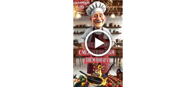 Видеооткрытка "20 октября Поздравляю с Международным днем повара!"