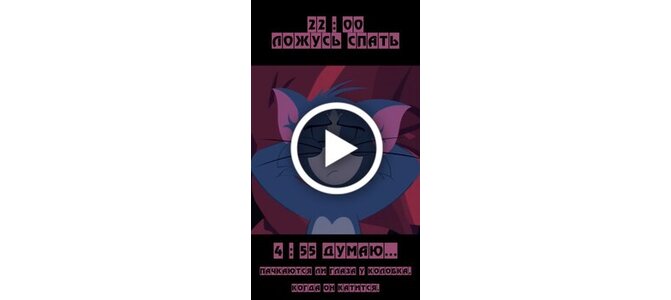 Видеооткрытка "22: 00 Ложусь спать. 4: 55 думаю... пачкаются ли глаза у колобка, когда он катится."