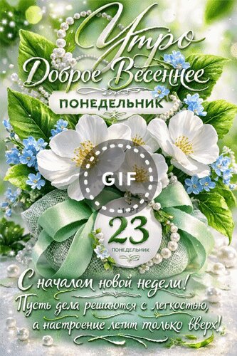 Анимированная открытка "23 марта Понедельник. Утро доброе весеннее. С началом новой недели! Пусть дела реша.тся с лёгкостью,"