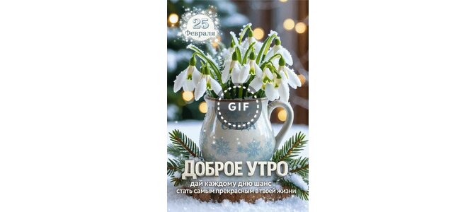 Анимированная открытка "25 февраля. Среда. Доброе утро. Дай каждому дню шанс стать самым прекрасным в твоей жизни"
