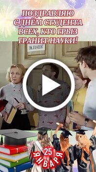 Видеооткрытка "25 января Поздравляю с Днём студента всех, кто грыз гранит науки! Припомним все: и милую общагу, и д"
