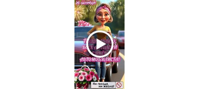 Видеооткрытка "26 октября Поздравляю всех автоледи с днём автомобилиста! Ни гвоздя, ни жезла!"