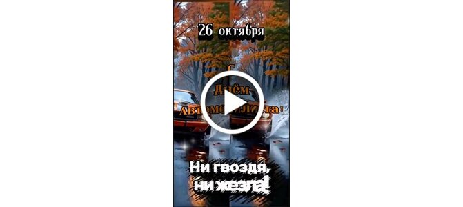 Видеооткрытка "26 октября С днем автомобилиста! Ни гвоздя, ни жезла! Желаю я дороги ровной! Добра и счастья впереди..."