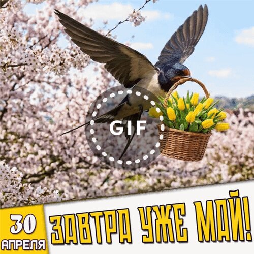 Анимированная открытка "30 апреля Завтра уже Май!"