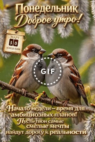 30 марта Понедельник! Доброе утро! Начало недели - время для амбициозных планов! Пусть твои самые смелые мечты найдут дорогу к реальности.