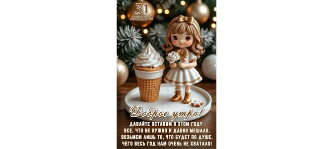 Открытка "31 ДЕКАБРЯ.ДОБРОЕ УТРО! ДАВАЙТЕ ОСТАВИМ В ЭТОМ ГОДУ - ВСЕ, ЧТО НЕ НУЖНО И ДАВНО МЕШАЛО. ВОЗЬМЕМ ЛИШЬ"