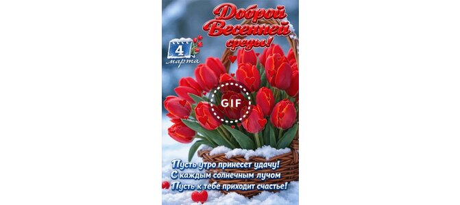 Анимированная открытка "4 марта. Доброй весенней среды! Пусть утро принесет удачу! "