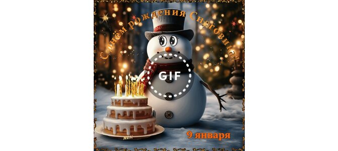 Анимированная открытка "9 января. С днём рождения Снеговика!"