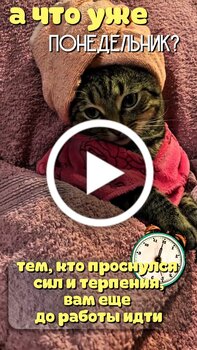Видеооткрытка "А что, уже понедельник? Тем, кто проснулся: сил и терпения, вам ещё до работы идти"