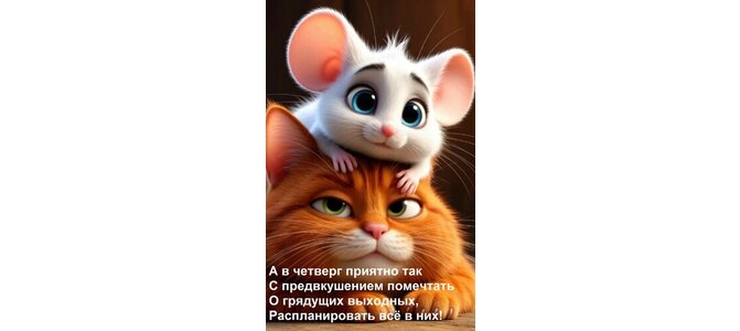 Открытка "А в четверг приятно так С предвкушением помечтать О грядущих выходных, Распланировать всё в них!"