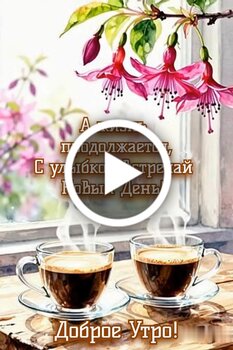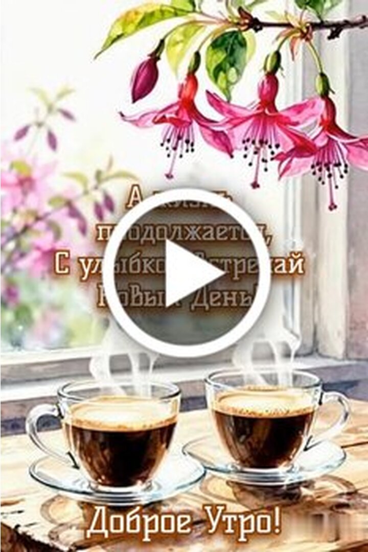 Красивое и вдохновляющее видео для доброго утра. На фоне нежных розовых цветов фуксии и солнечного света стоят две чашки горячего ароматного кофе, от которых поднимается легкий пар. Видео наполнено атмосферой уюта, спокойствия и позитива. Текст на экране напоминает о том, что жизнь продолжается и каждый новый день стоит встречать с улыбкой. Идеально подходит для того, чтобы поднять настроение себе и своим близким в начале дня.