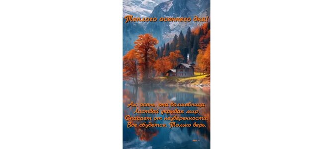 Открытка "Ах, осень, она волшебница, листвой укрывая мир, спасает от неуверенности. Все сбудется. Только верь."