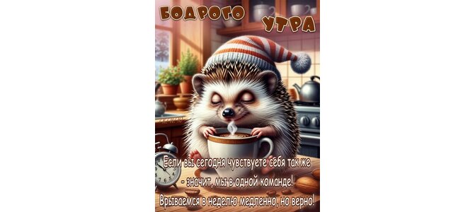 Теги:доброеутро, позитив, бодрого утра, начало недели, кофе, ежик
