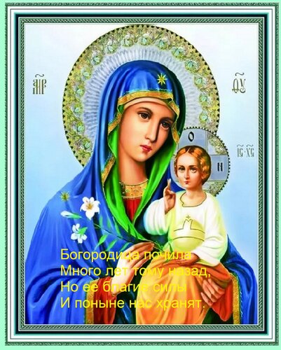 Открытка "Богородица почила Много лет тому назад, Но ее благие силы И поныне нас хранят."