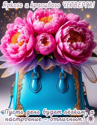 Теги:четверг, дни недели, цветы, пионы, женская сумка, легкого дня, позитива, отличного настроения, яркого и красивого дня, красивая картинка