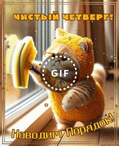 Анимированная открытка "Чистый Четверг! Наводим порядок!"