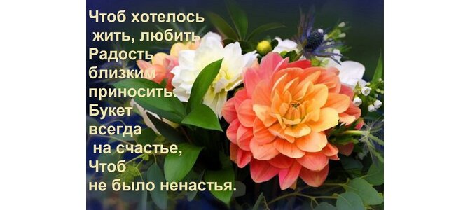 Чтоб хотелось жить, любить радость близким приносить. Букет всегда на счастье, Чтоб не было ненастья.