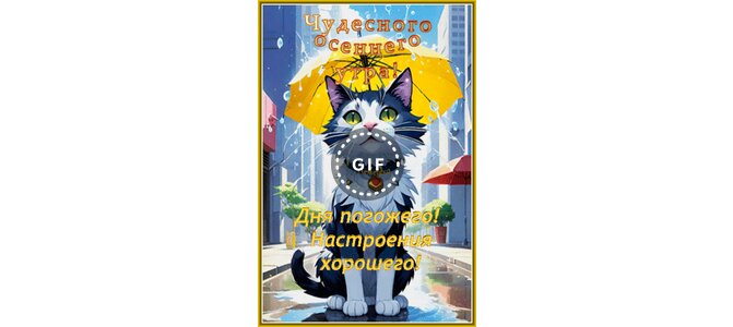 Теги:котик с зонтиком, небольшой дождик, падающий желтый лист, 3d текст