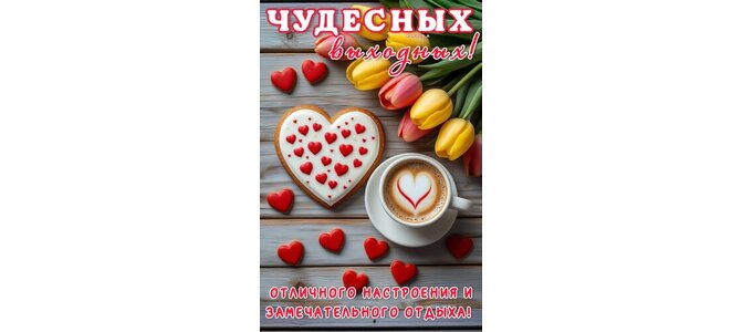 Открытка "ЧУДЕСНЫХ ВЫХОДНЫХ! ОТЛИЧНОГО НАСТРОЕНИЯ И ЗАМЕЧАТЕЛЬНОГО ОТДЫХА!"