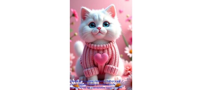 Открытка "Давайте кошечек любить, Заботу им свою дарить Беречь и ласковых собак, Чтоб не скитались просто так!"