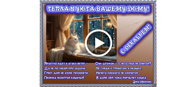 Видеооткрытка "декабрь тепла дому 1"