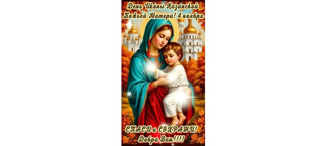 Открытка "День иконы Казанской Божьей Матери. 4 ноября."