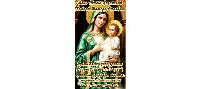 Открытка "День иконы Казанской Божьей Матери 4 ноября."
